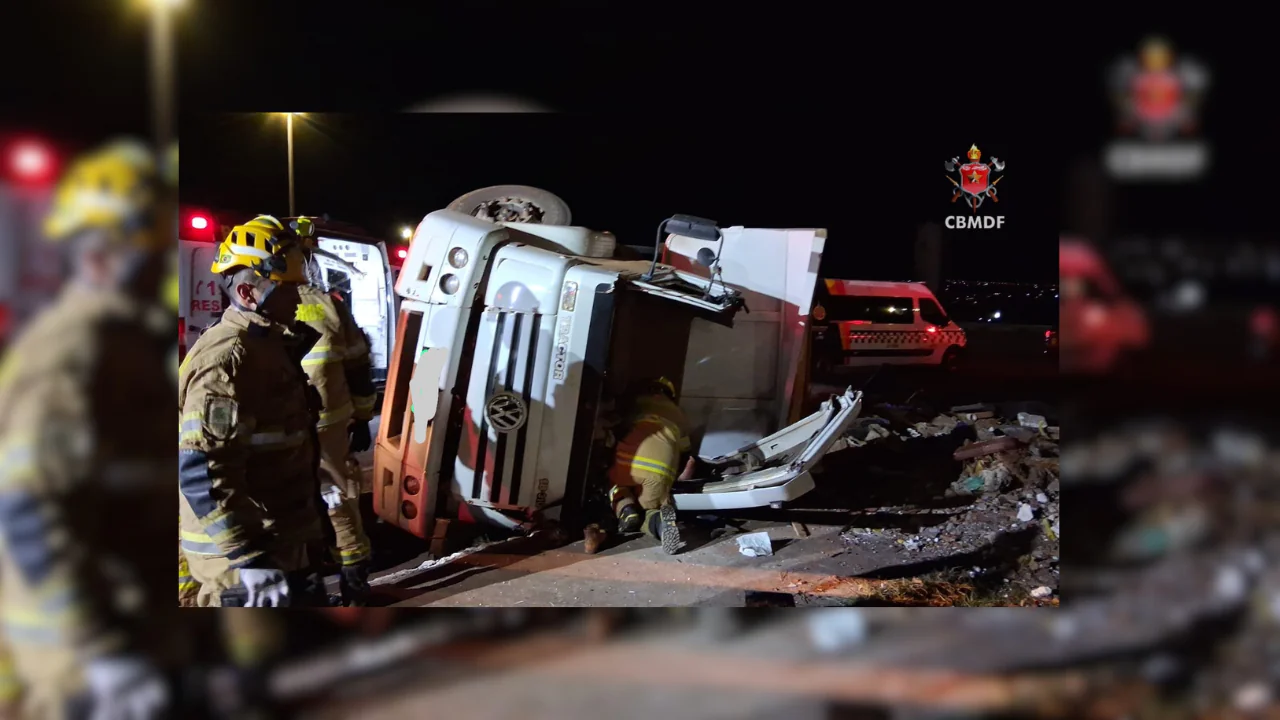 O Corpo de Bombeiros Militar do Distrito Federal (CBMDF) atendeu, na noite desta segunda-feira (27), uma ocorrência de tombamento de caminhão na BR-070, altura da QNO 07, em Ceilândia. A corporação mobilizou quatro viaturas para o resgate.